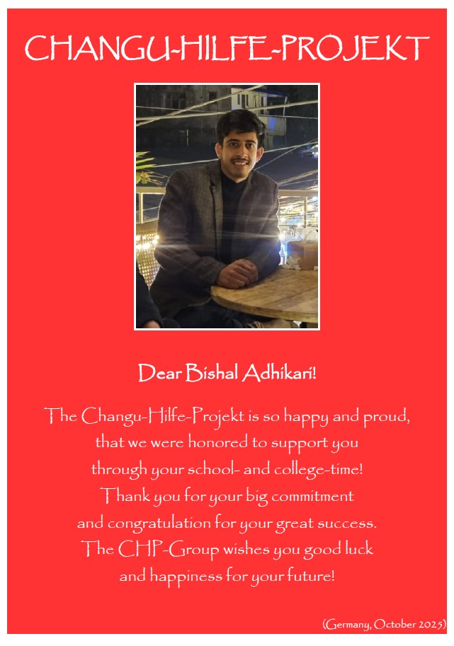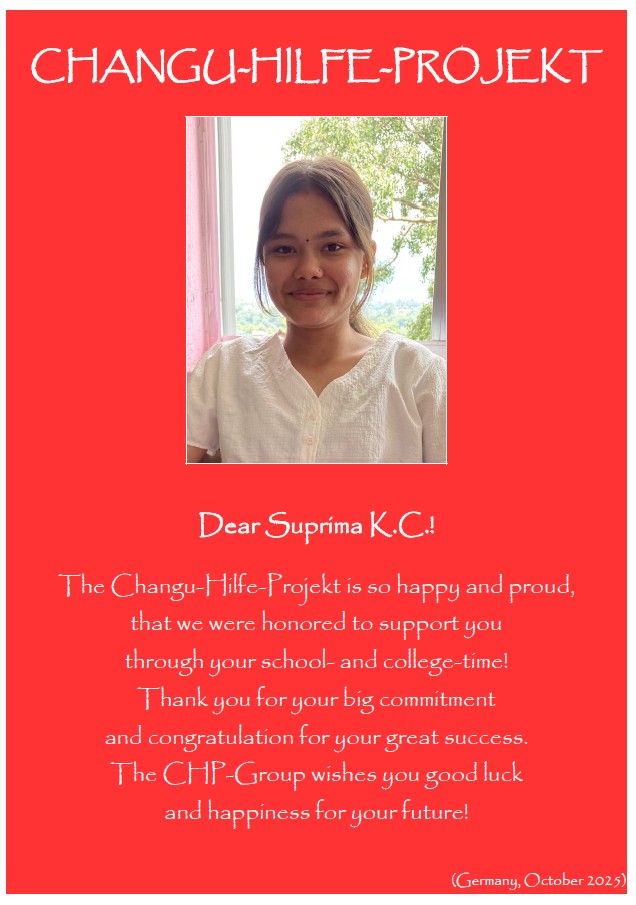Und im März/April ist es mal wieder so weit: Ein kleines CHP-Germany-Team reist wieder nach Nepal. Wir können euch dann mit den neuesten Informationen von euren Patenkindern versorgen. Falls ihr uns ein paar Briefe oder Fotos mitgeben möchtet, könnt ihr uns diese gerne zuschicken oder vorbeibringen. (Bitte nicht größer als Brief-Größe!!! Die Reisetasche wird sonst höchstwahrscheinlich recht groß.) „Einsendeschluss“ ist der 15.3.2026! ![]()